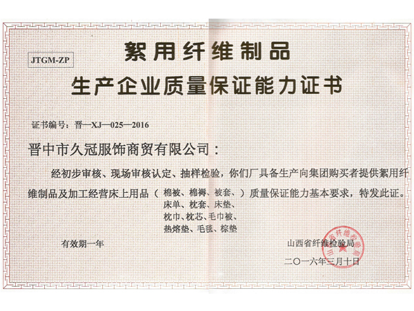 山西久冠服飾有限公司位于晉商故里山西省晉中市。公司注冊(cè)商標(biāo)“久冠”,是山西省教育學(xué)會(huì)學(xué)生服被裝專(zhuān)業(yè)委員會(huì)會(huì)長(zhǎng)單位,中國(guó)質(zhì)量萬(wàn)里行促進(jìn)會(huì)理事單位,中國(guó)教育裝備行業(yè)協(xié)會(huì)學(xué)校后勤裝備管理分會(huì)常務(wù)理事單位。
